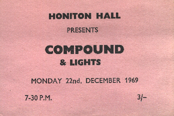 When I was 12 the brother of someone at school had a yellow Gigster kit for sale so I snapped it up for £10 and that was my start. Two boys in the same class had guitars and we started rehearsing Jimi Hendrix, The Who and Cream songs in the Cafe behind the Fish and Chip Shop. There were some lads a year or two older than us called Mike Bersin and John 'Tup' Taylor. In 1968 I used to go and see their band Colour all over the North including several gigs at Penketh and Sankey Youth Club. By 1969 they had moved on and formed a band called Ibex, then Wreckage, in London with Freddie Mercury. Meanwhile, Compound had their own gig at Penketh Youth Club where we had seen Colour perform so many times.