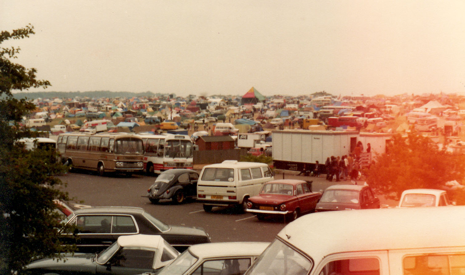 The Pyramid Stage at Stonehenge Festival circa 1983 on the afternoon before The Flying Pigs played.