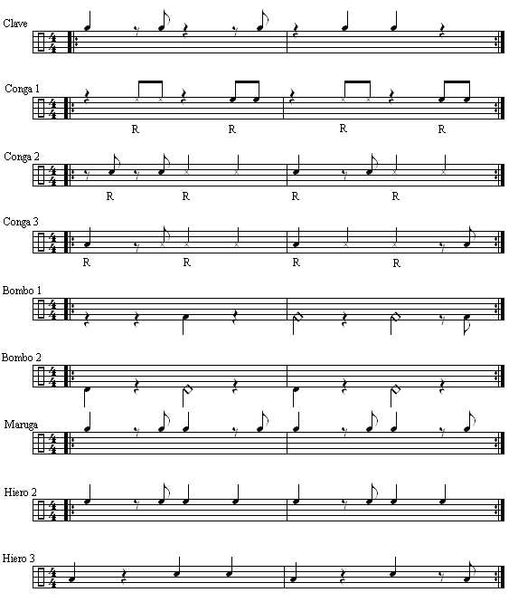 Conga is a processional rhythm featured at Mardi Gras. As with the Rumba. there are regional variations in the instrument patterns.